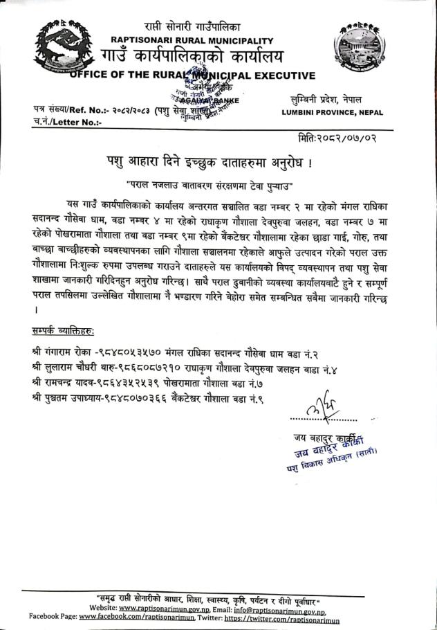 पशु आहारा दिने इच्छुक दाताहरुलाई अनुरोध