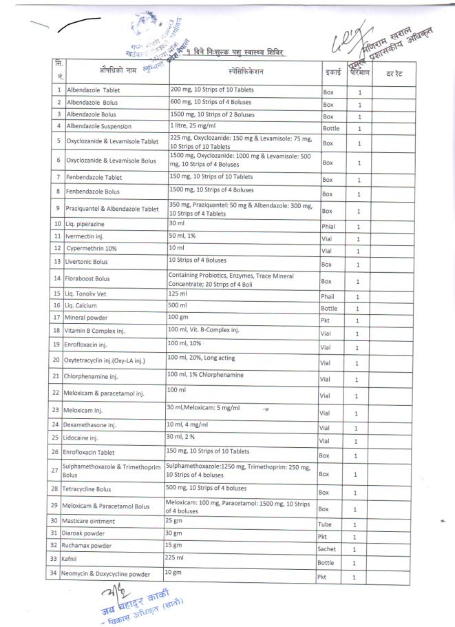 » पशु स्वास्थ सिविर र बर्षे घास सुडान विउको दर रेट पेश गर्ने सम्बन्धी सूचना!!!!