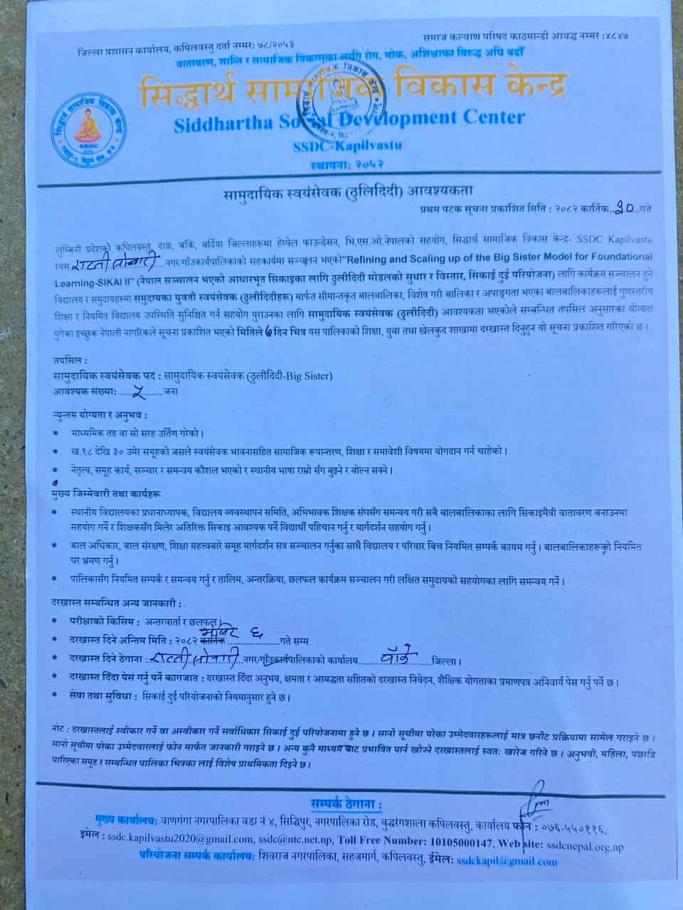 सामुदायिक स्वयंसेवक (ठुलीदीदी) आवश्यकता सम्बन्धी सूचना !!!