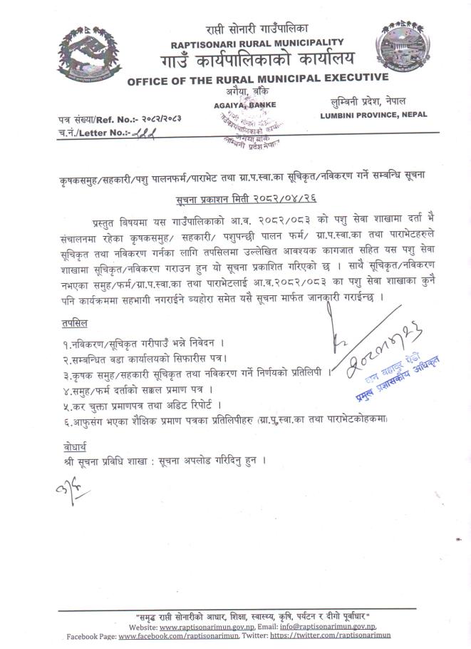 सुचिकृत तथा नविकरण गर्ने सम्बन्धी सूचना