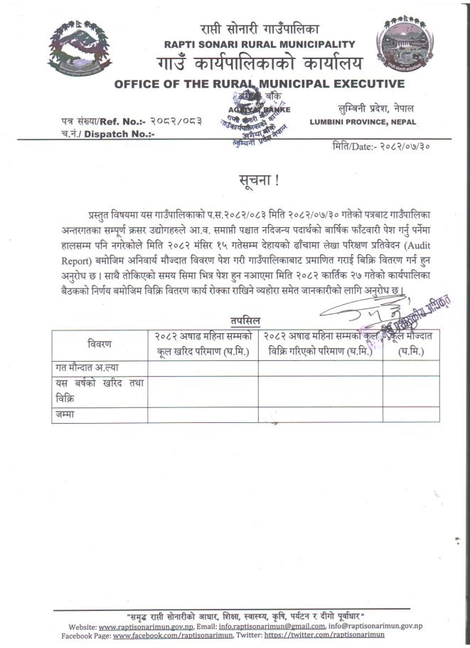 अबैध रुपमा डम्पिङ गरि राखिएको ढुङ्गा/गिट्टी/बलुवा लगायतका नदिजन्य पदार्थको दावी सम्बन्धी सार्वजनिक सूचना !!!