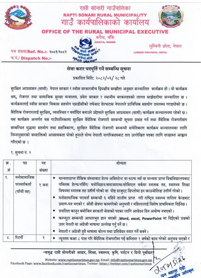 » सेवा करार पदपूर्ति गर्न सम्बन्धी सूचना