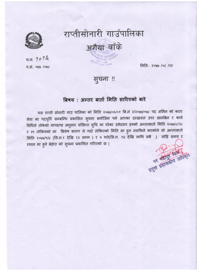 अमिन पदको अन्तरवार्ता मिति सारिएको सम्बन्धि सूचना !!! ( प्रकाशित मिति ०७७/८/२३)