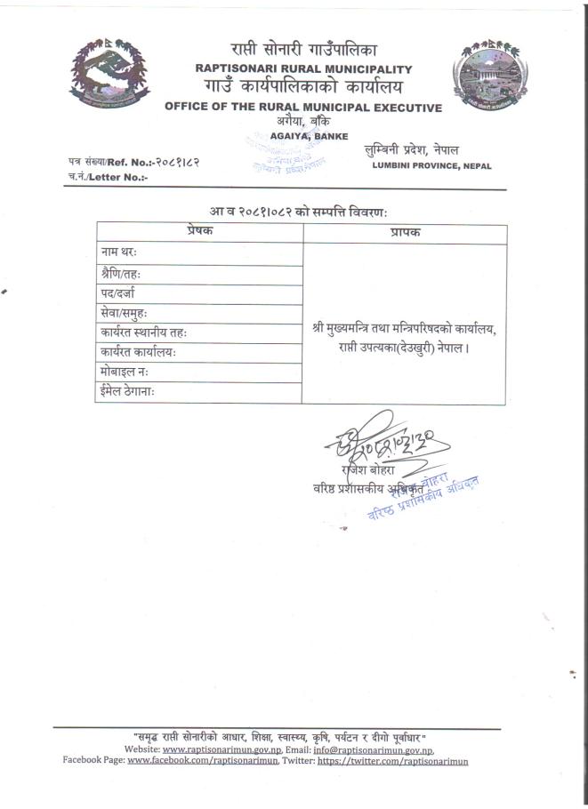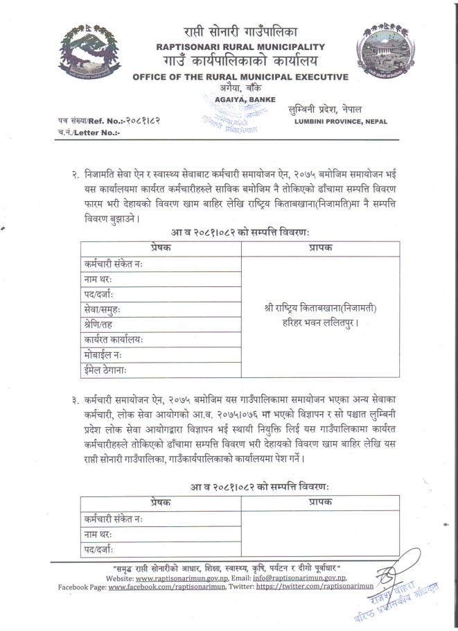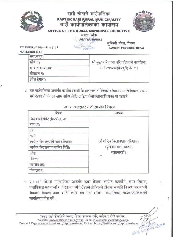 » आ.ब २०८१/०८२ को सम्पत्ति विवरण पेश गर्ने सम्बन्धी सूचना