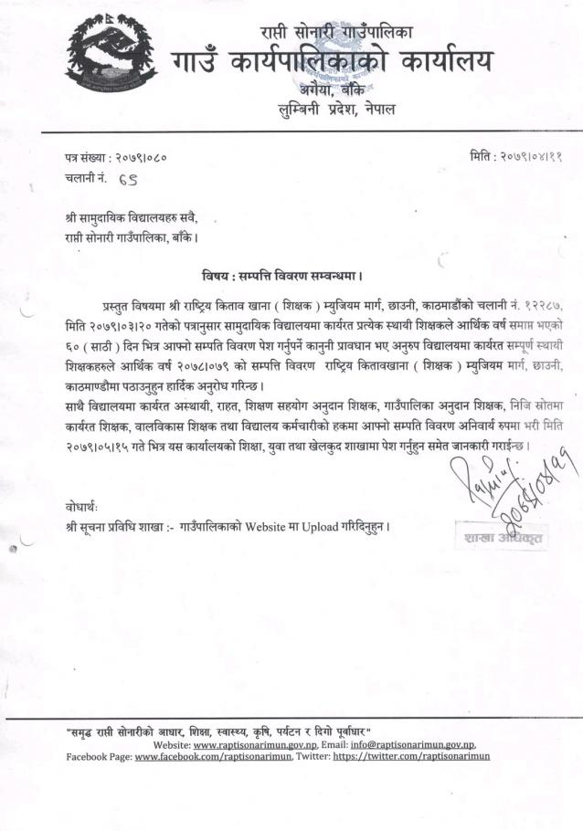 आर्थिक वर्ष २०७८/०७९ को सम्पत्ति विवरण भरी पठाउने सम्बन्धी सूचना