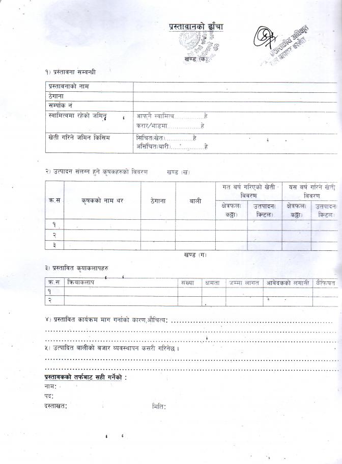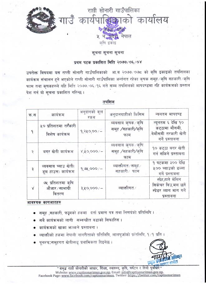 आ.व. ०७७/०७८ का लागि कृषि तर्फका विभिन्न कार्यक्रमका लागि प्रस्तावना माग सम्बन्धि १५ दिने सूचना (प्रकाशित मिति ०७७/०६/०४)!!!