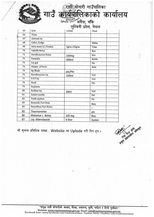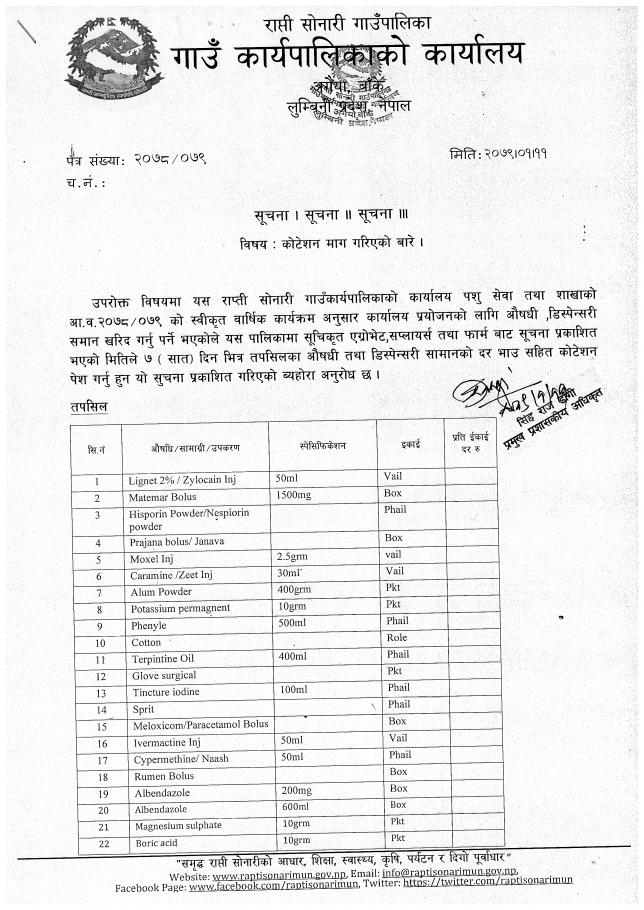 कोटेशन माग गरिएको वारे सूचना (प्रकाशित मिति २०७९/०१/११)
