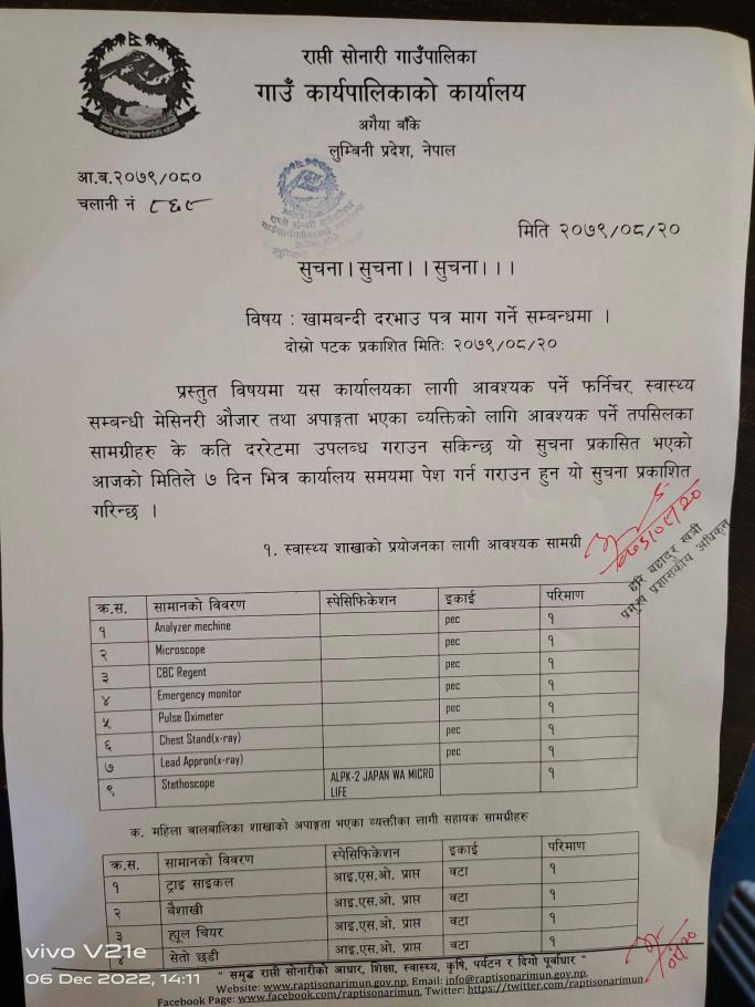 सार्वजनिक खरिद/बोलपत्र सूचना