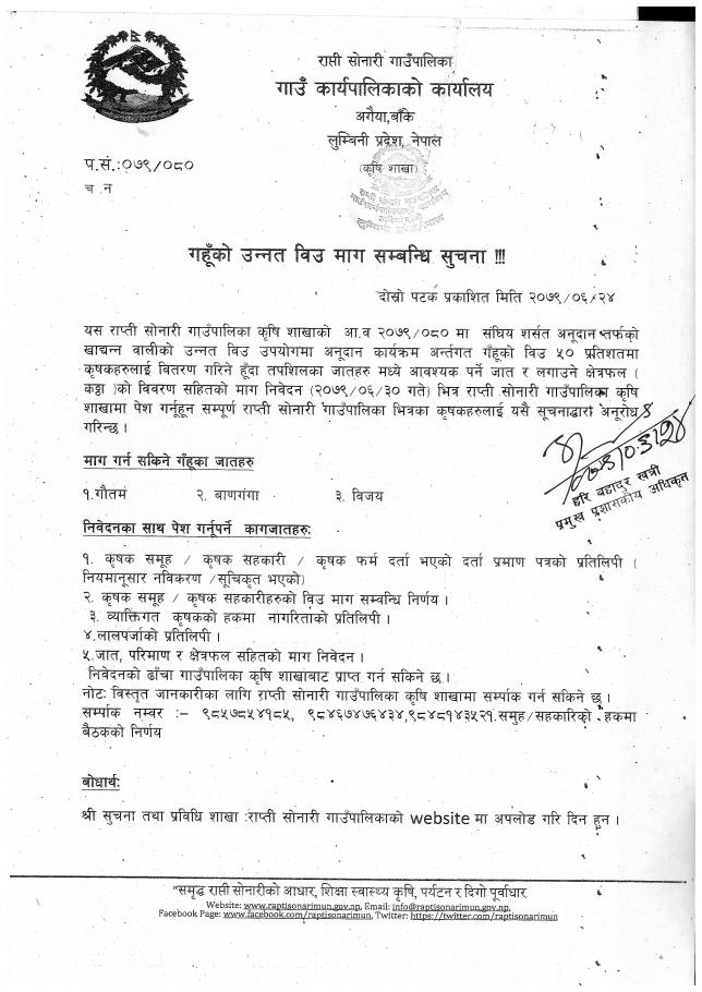 » गहुँको उन्नत विउ माग सम्बन्धि सूचना !!!