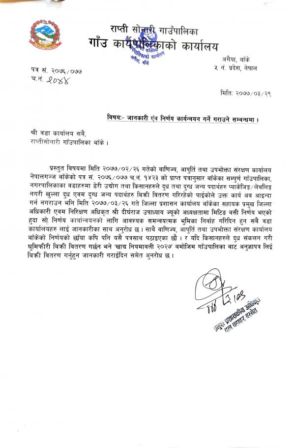जानकारी एवं निर्णय कार्यान्वयन गर्ने गराउने समबन्धमा (श्री सबै वडा कार, राप्ती सोनारी गा.पा)