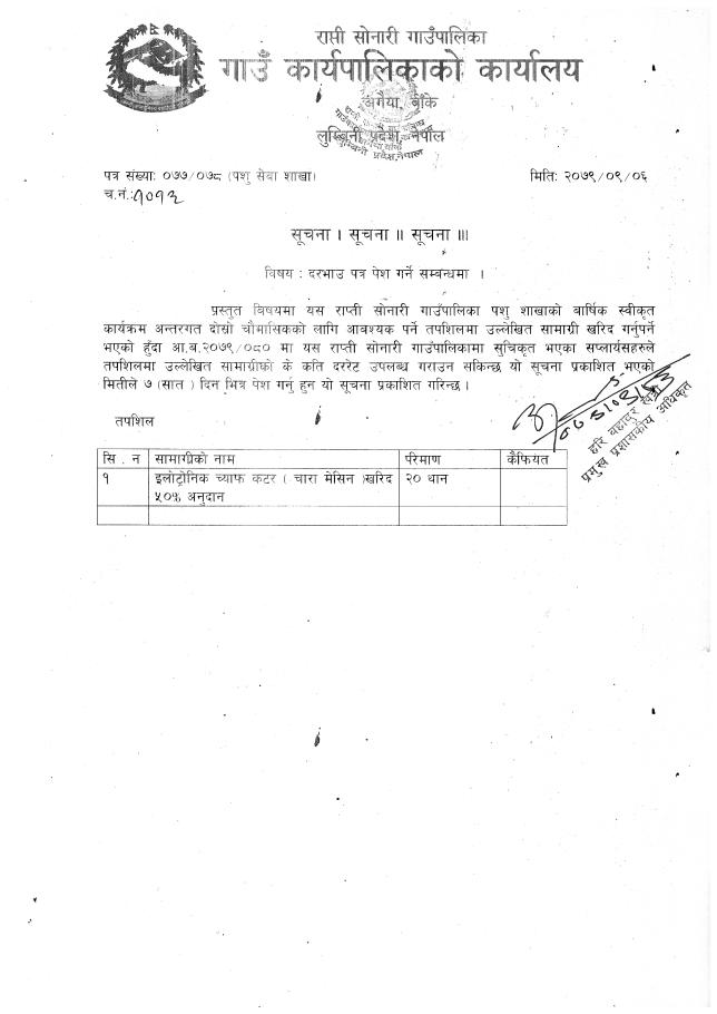 cctv सामाग्रीहरुको खरिदका लागि शिलबन्दी दररेट पेश गर्ने सम्बन्धी सूचना !!!
