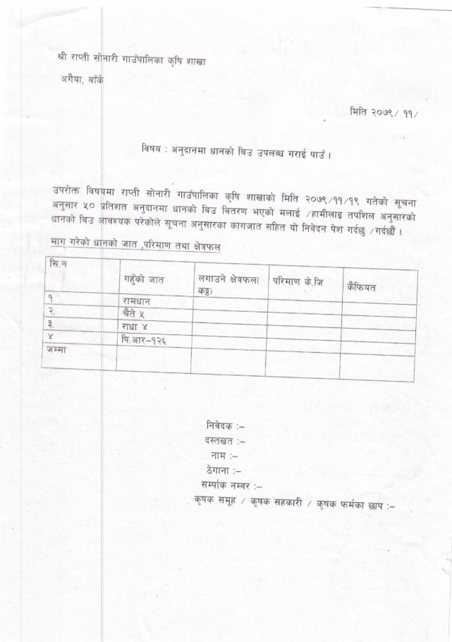 » धानको उन्नत बिउ माग सम्बन्धि सुचना !!!