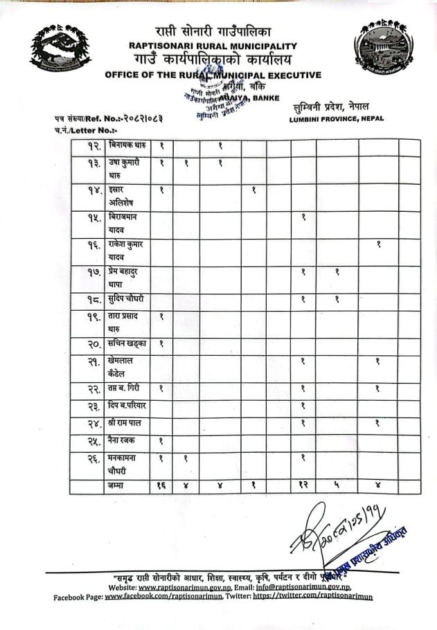 राप्तिसोनारी गाउपालिका ८२-८३ नीति ,तथा कार्यक्रम