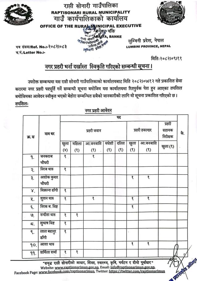 नगर प्रहरीको भर्ना दर्खास्त स्वीकृत गरिएको सम्बन्धी सूचना !!!