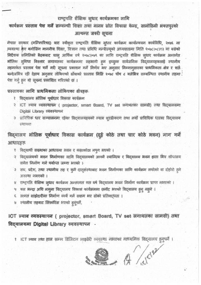 विभिन्न निर्माणकार्यहरु बोलपत्र आह्वान सम्बन्धी सुचना