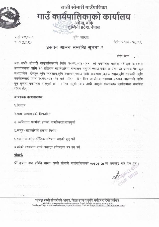 प्रस्ताव आव्हान सम्बन्धि सूचना (दोश्रो पटक प्रकाशित सूचना २०७९/०५/१९)