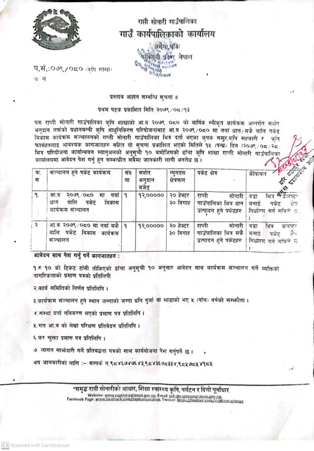 प्रस्ताव आह्वान सम्बन्धि सुचना (प्रकाशित मिति २०७९/०८/१३)