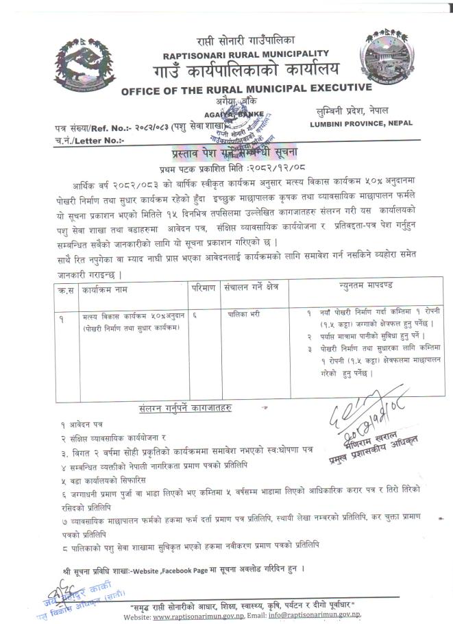 बोल पत्र स्वीकृत गर्ने आशयको सूचना