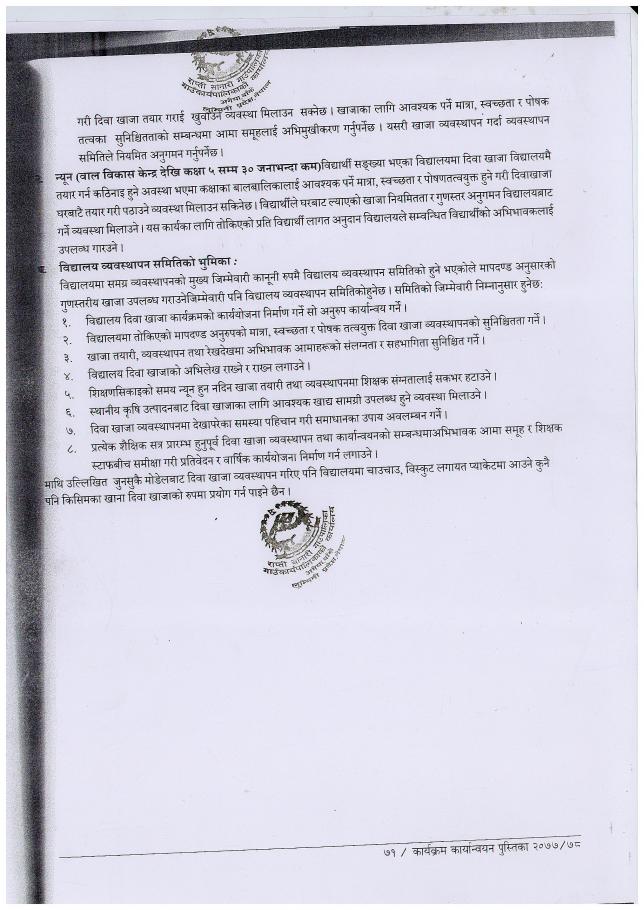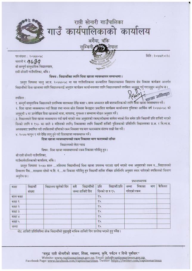 बिद्यार्थीका लागि दिवा खाजा ब्यबस्थापन सम्बन्धि सूचना !!