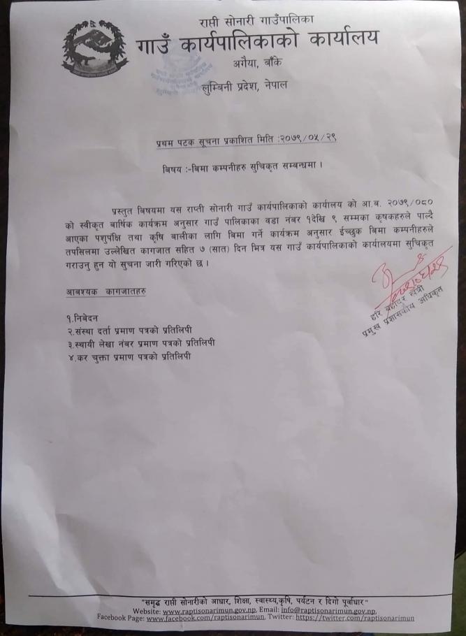 राप्ती सोनारी गाउँपालिकाको सर्वजनिक सुनुवाई सम्बन्धी सूचना