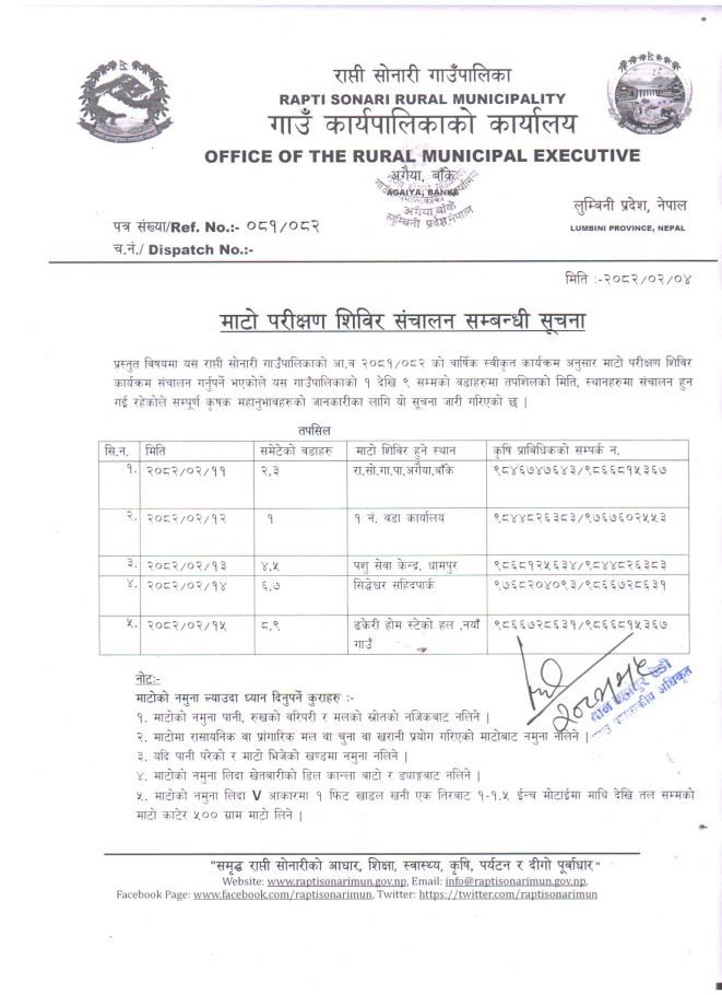 » माटो परिक्षण शिविर संचालन हुने सम्बन्धी सूचना