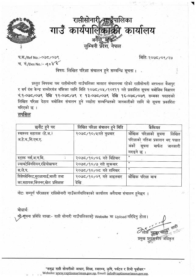 लिखित परिक्षा संचालन सम्बन्धि सूचना (प्रकाशित मिति २०७८/०९/२७)