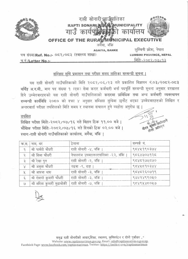 संक्षिप्त सूची प्रकाशन तथा परिक्षा समय तालिका सम्बन्धी सूचना !!!
