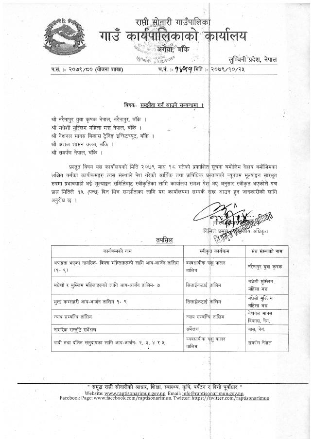 सम्झौता गर्न आउने सम्बन्धमा (प्रकाशित मिति २०७९/१०/२५)