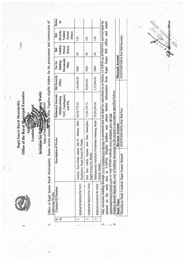 विभिन्न निर्माणकार्यहरु बोलपत्र आह्वान सम्बन्धी सुचना