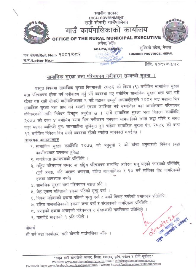 » सामाजिक सुरक्षा भत्ता परिचयपत्र नवीकरण सम्बन्धी सूचना !!!