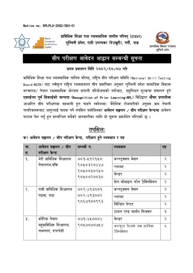 सिप परिक्षण आबेदन आह्वान सम्बन्धी सूचना !!!