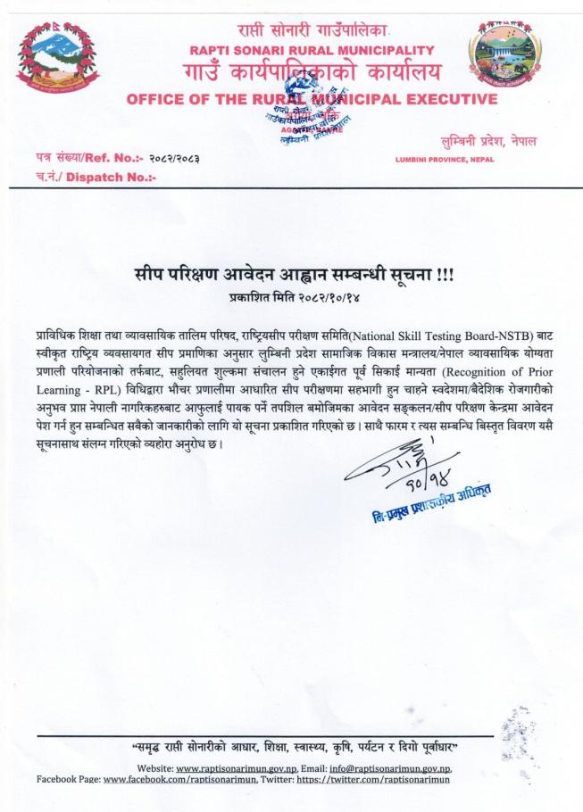 राप्ती सोनारी गाउँपालिकाको सर्वजनिक सुनुवाई सम्बन्धी सूचना