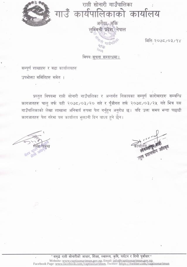 सूचना !!! (प्रकाशित मिति २०७८/०३/१४)