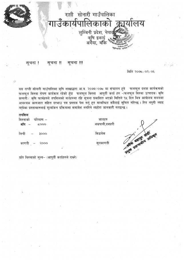 आलु बाली पकेट कार्यक्रम को दरखास्त पेश गर्ने सम्बन्धि ७ दिने सुचना !!!