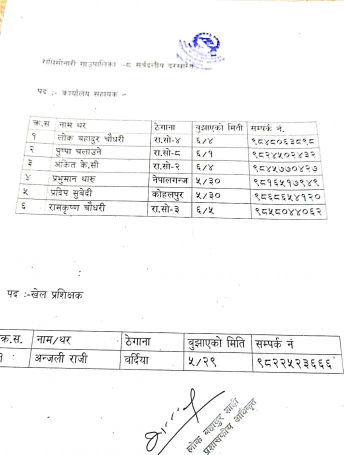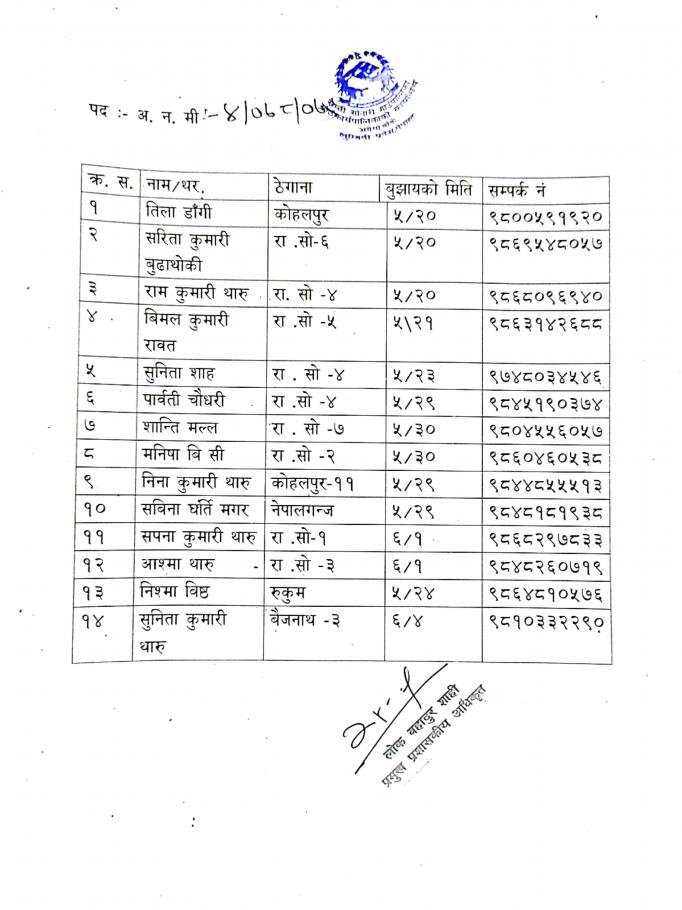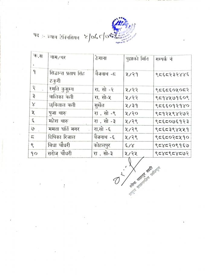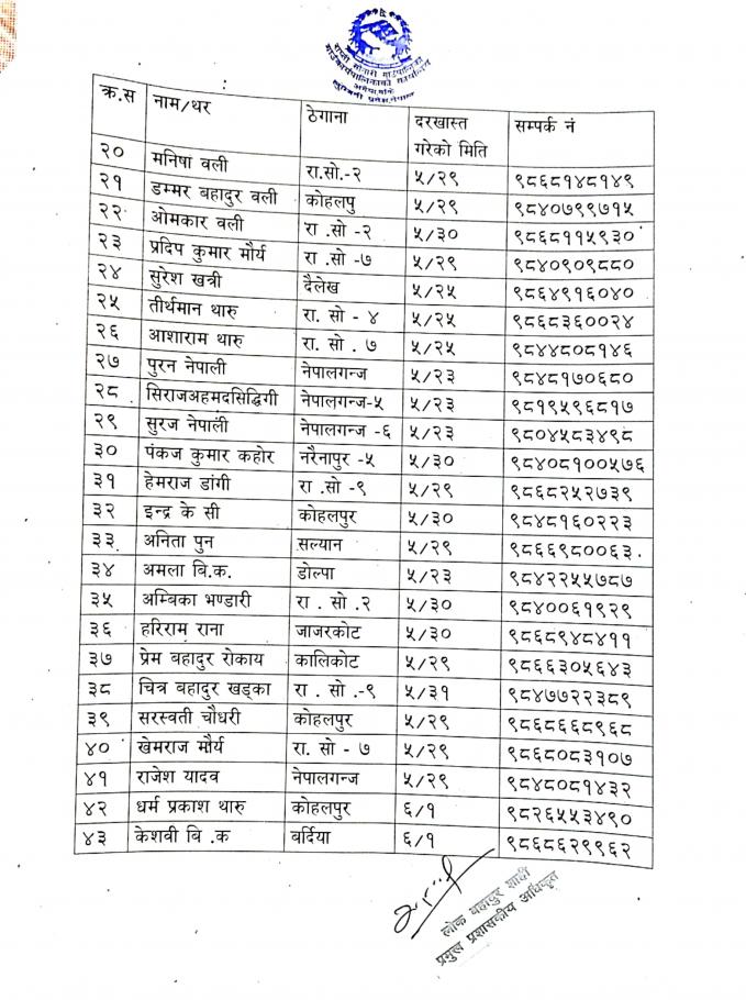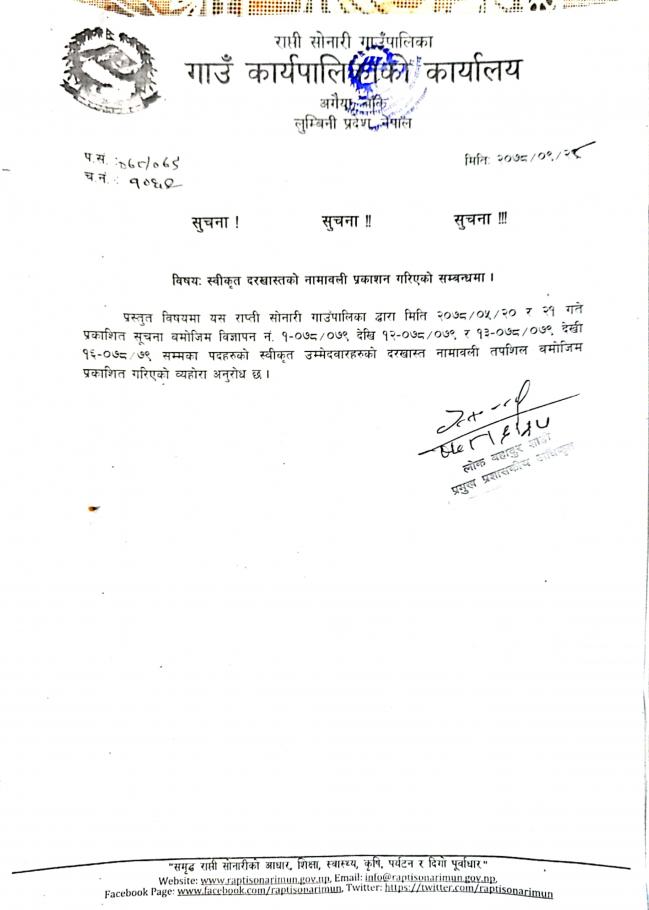 » स्वीकृत दरखास्तको नामावली प्रकाशन गरिएको सम्बन्धमा (प्रकाशित मिति २०७८/०९/२८)