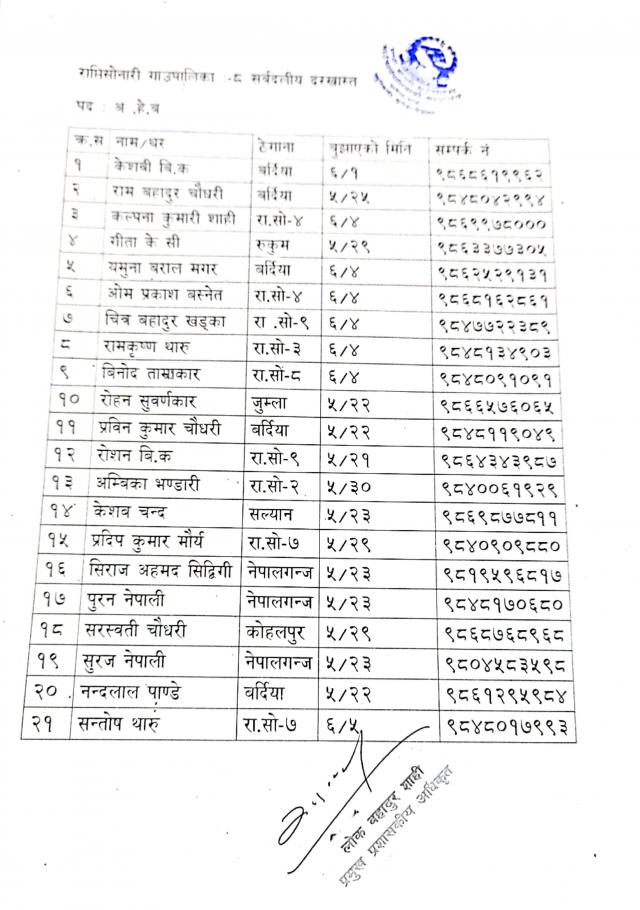 स्वीकृत दरखास्तको नामावली प्रकाशन गरिएको सम्बन्धमा (प्रकाशित मिति २०७८/०९/२८)
